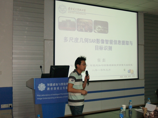 在这一次学术交流活动中,来自我校“智能感知与图像理解”教育部重点实验室、雷达信号处理国家重点实验室及西北工业大学陕西省语音与图像处理重点实验室的一批优秀教师、博士后、博士研究生、硕士研究生也分别就方向滤波器组研究、无损信息隐藏、极化合成孔径雷达图像分割与地物识别、基于稀疏投影的波达方向估计、SAR图像处理方法、压缩感知学习、协同进化多目标优化算法、实验室遥感数据资源介绍与应用等相关研究领域进行了生动介绍与热烈探讨。