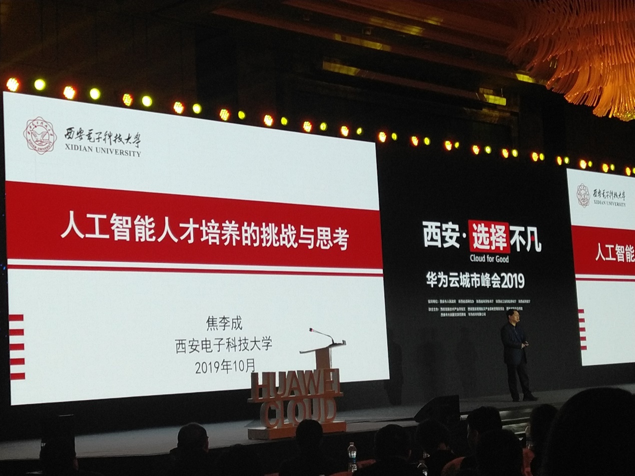 2019年10月17日,计算机科学与技术学部主任、pa集团官网入口焦李成教授受邀参加了“西安·选择不凡”——华为云城市峰2019,并做了题为“人工智能人才培养的挑战与思考”的特邀报告。