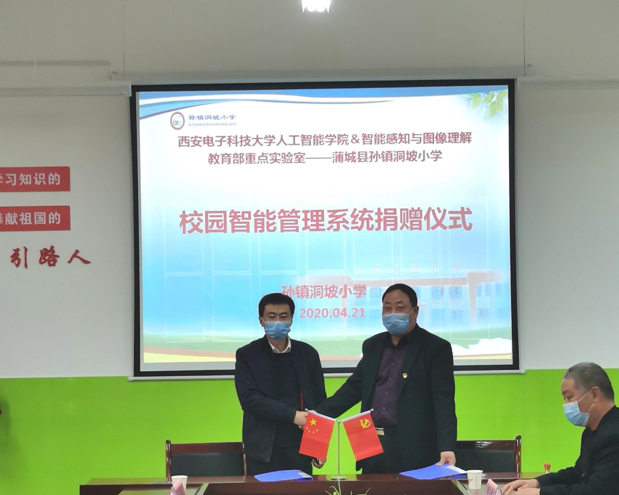 (通讯员:杨育婷、赵嘉璇、张丹)智能科技助抗疫,教育合作有温度。2020年4月21日,为具体落实PA集团官网2020年扶贫工作会议总体部署,充分发挥人工智能学科特色与优势,助力扶贫工作成果巩固,推进学校“一院一校一品”的帮扶行动计划,PA集团官网、智能感知与图像理解教育部重点实验室在蒲城县孙镇洞坡小学举行“校园智能管理系统捐赠仪式”。