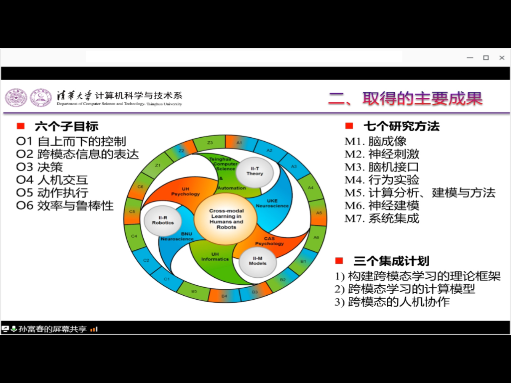 孙富春教授以一首苏轼的《题西林壁》为引子,带大家走入了多模态和跨模态学习的研究世界,他介绍了中德合作的跨模态学习项目中的一系列前沿工作和方向,包括用多重扰动分析揭示多感觉信息处理的神经环路基础、用脑科学的发现改进深度学习、内隐学习等。