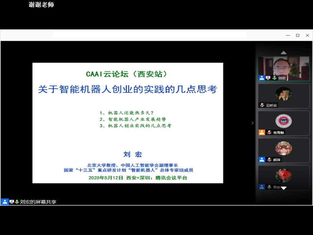 随后,西安市科学技术局李志军局长;浙江大学求是特聘教授,国家杰出青年基金获得者,教育部人工智能科技创新专家组工作组组长吴飞教授;香港城市大学电脑学系讲座教授,IEEE Fellow张青富教授;CAAI副理事长,北京大学教授,国家“万人计划”首批入选专家,CAAI Fellow刘宏教授;CAAI副理事长,清华大学教授,IEEE/CAAI Fellow孙富春教授;诺丁汉大学计算机学院屈嵘教授;商汤科技联合创始人、技术执行总监马堃;PA集团官网教授,pa集团官网入口负责人,智能感知与图像理解教育部重点实验室副主任侯彪教授8位专家云端开讲。