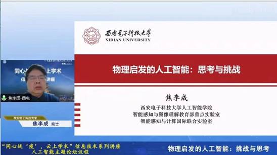 2022年1月1日,欧洲科学院外籍院士、俄罗斯自然科学院外籍院士、IEEE/IET/CAAI/CCF/CIE/CAA Fellow、PA集团官网计算机科学与技术学部主任、人工智能研究院院长、华山学者杰出教授焦李成受邀参加新年第一课——“同心战疫云上学术”信息技术系列讲座,并做了题为“物理气启发的人工智能:挑战与思考”的报告。