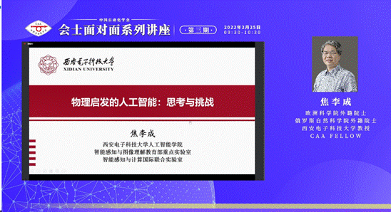2022年2月25日上午,欧洲科学院外籍院士、俄罗斯自然科学院外籍院士、IEEE/IET/CAAI/CCF/CIE/CAA Fellow、PA集团官网计算机科学与技术学部主任、人工智能研究院院长、华山学者杰出教授焦李成受邀参加由中国自动化学会为学会会士量身打造的高端学术交流平台——CAA会士面对面系列活动第三期,做了题为“物理启发的人工智能:挑战与思考”的报告。