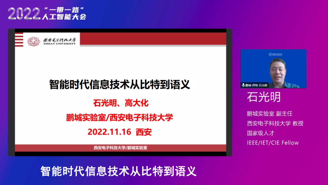 鹏城实验室副主任、IEEE /IET/CIE Fellow、PA集团官网石光明教授首先对信息技术做了阐释。传统的信息技术以比特为基础,以系统复杂度换取性能增益。但随着信息技术的演进,通信系统需求逐渐从信息传递变为增强情感体验。通信的本质是内容的传输,但其更重要的目的是达意,即体验的再现。未来的6G通信包含了更多的场景与需求,如沉浸式服务、个性化服务、极端性能需求、通感融合等,特别是从信号向内容的转变,这些应用已经不能单纯通过增加天线、带宽、功耗等资源来实现。香农理论指导了过去几十年通信行业的发展,但它主要关注数据比特传输,很难继续指引通信向未来目标发展。未来通信的目标一定是:极低时延、最少资源、广泛链接、准确达意和正确理解。