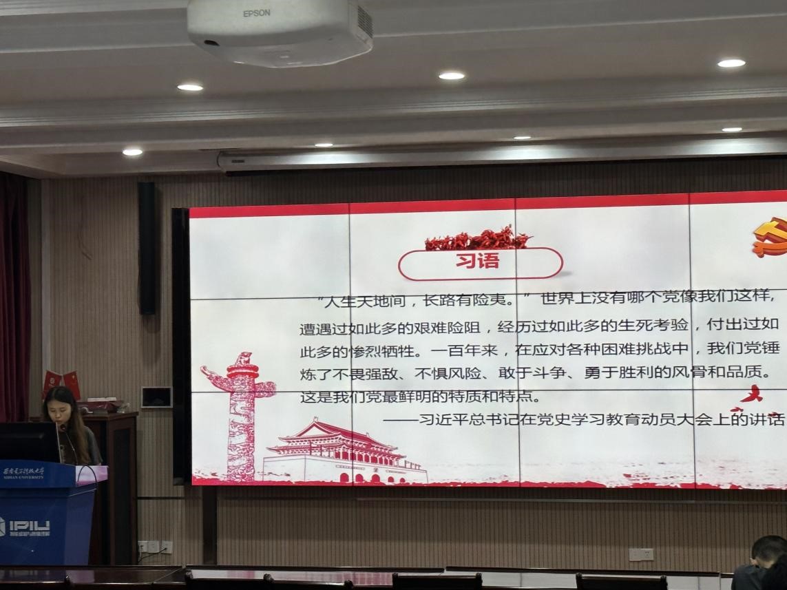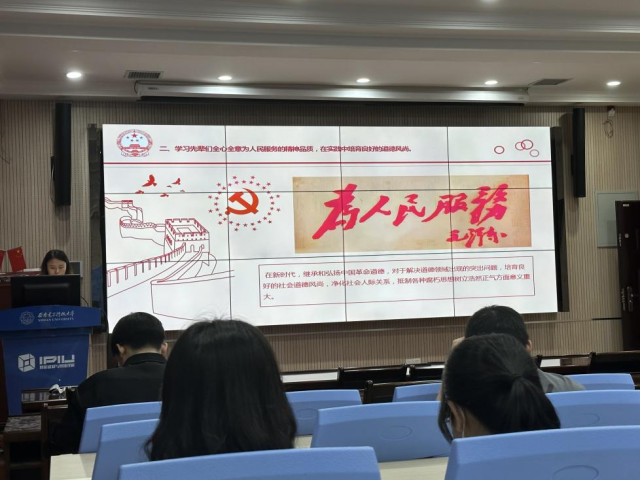会上,全体师生首先观看了党课视频。视频以我校“五楼会战”为背景,讲述了西电前辈们在建国初期,为了新中国国防与经济建设需要,扎根西部、艰苦奋斗,取得了众多科研成果的感人事迹,为新中国科技事业发展做出重大贡献。会议以此号召广大毕业生要继承老一辈西电人的优良作风,继续发扬艰苦奋斗、自强不息、求真务实、爱国为民的西电精神,用爱国情、强国志,践行教育初心和报国使命。