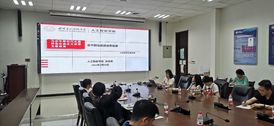 会议首先认真学习了习近平总书记在听取陕西省委和省政府工作汇报时的重要讲话精神以及在内蒙古调研时对抓实以学正风、解决突出问题有关要求和指示精神。随后,会议听取了学院主题教育开展以来的情况汇报,学院领导班子成员报告了参加开展主题教育以来的体会收获以及整改整治工作的进展情况,陕西省“双带头人”党支部书记工作室负责人、智能所党支部书记张向荣和教育部“样板支部”创建培育单位、博士第一党支部书记杨瑞分别报告了师生党支部开展主题教育的工作情况,院团委书记、本科第一党支部书记杨坤报告了学院主题教育实践育人开展情况。