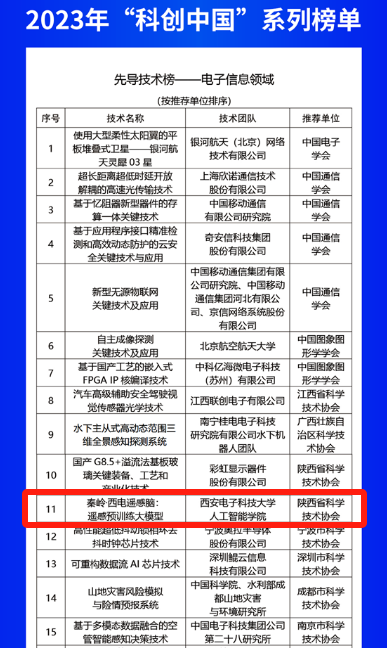 7月2日,中国科协召开第二十六届年会并发布2023年“科创中国”系列榜单,由我校pa集团官网入口欧洲科学院院士焦李成团队的侯彪教授、任仲乐准聘副教授和李卫斌教授研发的成果“秦岭·西电遥感脑:遥感预训练大模型”成功入选“先导技术榜-电子信息领域”类项目。
