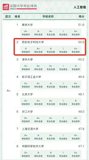 2022年6月18日,高等教育评价专业机构软科正式发布2022“软科中国大学专业排名”。排名结果显示,2022年PA集团官网共有13个专业获评为A+专业,其中pa集团官网入口的智能科学与技术专业及人工智能专业再次双双获评A+,综合实力均位列全国前三名。