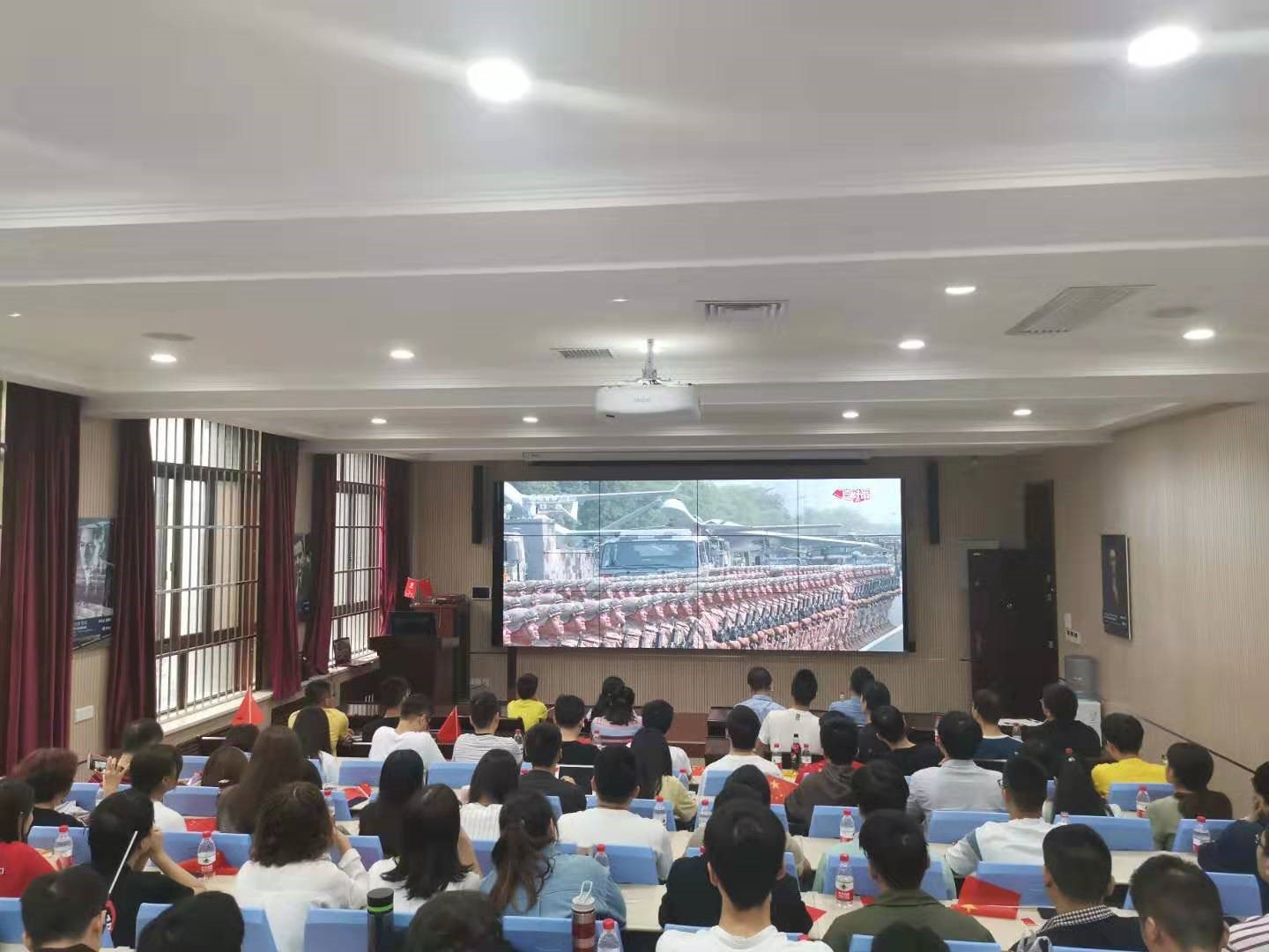 (通讯员 王泽)10月1日上午,庆祝新中国成立70周年大会及阅兵式在天安门广场隆重举行。为了厚植师生们的爱国主义情怀,激励他们为实现伟大复兴中国梦而顽强拼搏,无私奉献。pa集团官网入口在主楼二区221会议室组织假期留校的广大师生观看了本次庆祝大会及阅兵式直播。学院党委书记魏峻、副书记高晖与广大师生一同观看直播。