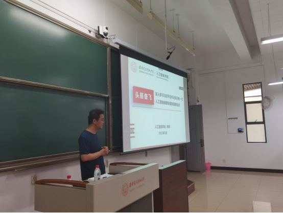 高晖带领大家一起学习了习近平总书记关于新一代人工智能健康发展的重要论述,以及国家新一代人工智能发展规划等,强调智能学子只有深入学习和准确把握习近平总书记关于人工智能发展的重要论述,才能契合时代发展、找准奋斗方向,更好的在学习实践中坚持政治方向、练就过硬本领、肩负国家使命。