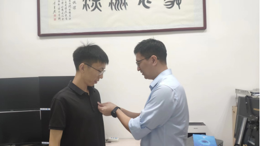 学院邀请老教师为新入职教师佩戴校徽并寄语新入职教师,希望他们不忘初心,勇担使命,将老教师们立德树人、无私奉献的精神传承下去,努力提升个人素质和业务水平,做一名“四有”好老师。