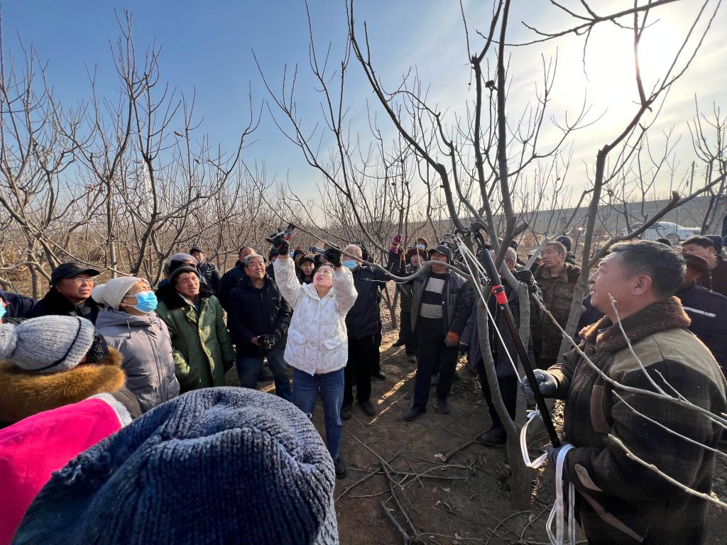 2024年1月16日,学校驻遵化市苏家洼镇大刘庄村下沉工作队组织遵化市自然资源和规划局果树专家上门为当地村民开展板栗树整形修剪技术培训,积极助力地方经济发展。