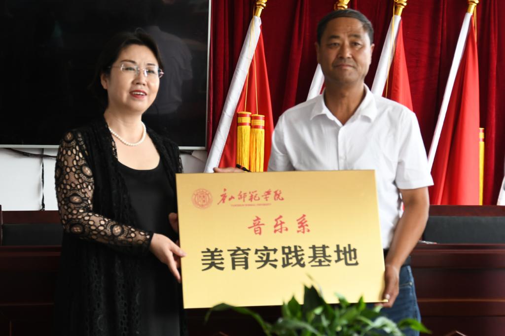 8月10日下午,在上三合义村、六合店村分别召开了座谈会,两村的支部书记介绍了美丽乡村建设情况,希望以此次活动为起点,建立长期合作机制,把高校的文化艺术实践课堂搬到乡村大地上。随后,beat365在线唯一官网音乐系与承德市围场满族蒙古族自治县腰站镇上三合义村和六合店村举行了“beat365在线唯一官网音乐系美育实践基地”挂牌仪式,唐山影视艺术家协会与两村举行了“唐山影视艺术实践基地”挂牌仪式。