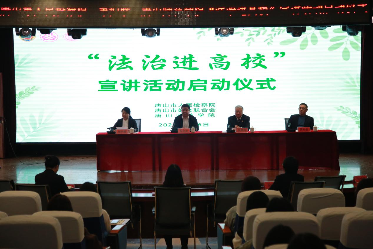 为进一步强化“法治进校园”普法宣传教育力度,增强大学生的法治意识,加强和谐平安校园建设,让大学生种下法治信仰的种子。3月6日,师院与唐山市人民检察院、唐山市妇女联合会共同举办“法治进高校”宣讲活动启动仪式。党委常委、副院长安文忠,唐山市人民检察院检委会专职委员张炳泽和唐山市妇女联合会副主席张伊娜出席会议。