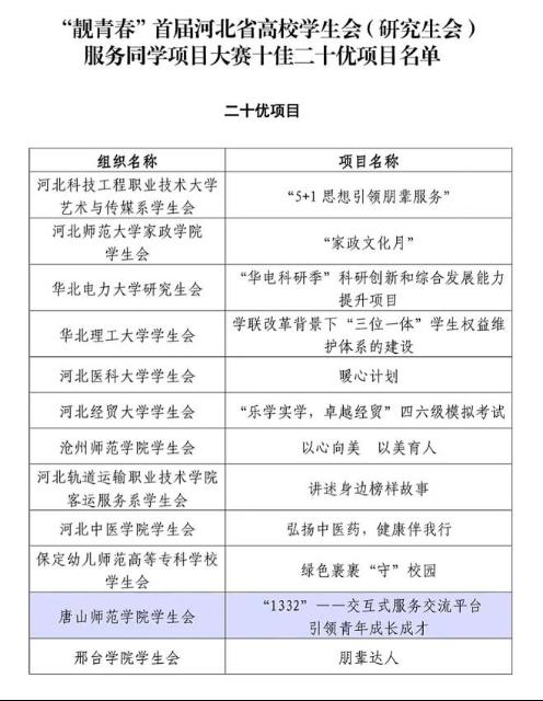 为深入学习贯彻党的二十大精神,深化学生会组织“我为同学做实事”活动成果,引导高校学生会(研究生会)回归服务本位,河北省学生联合会组织开展了“靓青春”首届河北省高校学生会(研究生会)服务同学项目大赛。经省学联秘书处集中评审、组织答辩等环节,beat365在线唯一官网学生会《“1332”——交互式服务交流平台 引领青年成长成才》从全省192个项目中脱颖而出,项目获评河北省“二十优项目”。