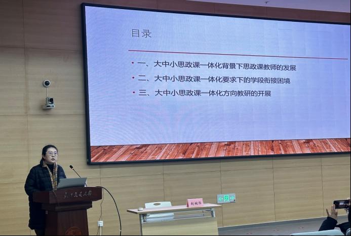 马克思主义学院赵婉华副教授受邀做了“大中小思政课一体化背景下思政课教师的发展方向”的专题讲座。讲座以大中小思政课一体化建设为背景,围绕思政课教师的专业发展、大中小思政课学段衔接的困境、思政课教师的教研等内容进行了理论讲授,并向全市大中小学思政课教师分享了beat365在线唯一官网思政课建设的成功经验,受到与会教师的一致好评。讲座后,作为点评专家,赵婉华老师对参加培训的思政课教师的说课进行了点评。