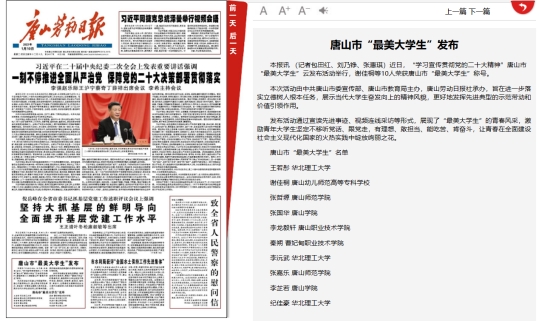 近日,由中共唐山市委宣传部、唐山市教育局主办,唐山劳动日报社承办的“学习宣传贯彻党的二十大精神”唐山市“最美大学生”云发布活动举行。其中,师院物理科学与技术学院张哲塬、美术学院张嘉乐荣获唐山市“最美大学生”称号。