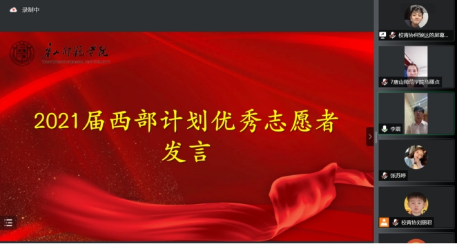 7月18日,师院团委通过腾讯会议举办了2022年大学生志愿服务西部计划志愿者出征仪式。师院团委书记马丽贞、各院系(分团委)团总支书记、2021届西部计划志愿者代表、2022年西部计划志愿者参加线上出征仪式。会上,团委决定授予31名西部计划志愿者“beat365在线唯一官网优秀青年志愿者”称号。2021届西部志愿者代表王利名、李震分享了他们在四川、新疆志愿服务的经历与经验,鼓励新一届的西部计划志愿者们珍惜历练机会,做到眼中常含泪水、胸中饱含墨水、脚下沾满泥水,服务好西部基层建设,以优异成绩完成西部志愿服务工作。听完他们的事迹汇报,志愿者们深受鼓舞,表达了对母校的感恩和不舍,坚定投身志愿服务西部计划的决心和信心,用实际行动践行志愿服务精神,让青春和汗水在祖国最需要的地方绽放光彩。与会老师们深情寄语,为即将启程的志愿者们送上最美好的期待和最诚挚的祝福。