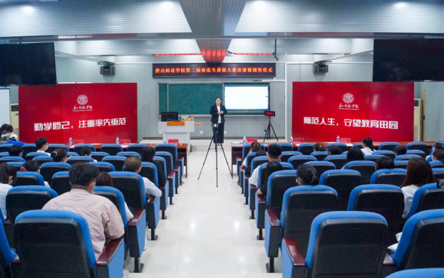 5月29日,大赛颁奖仪式在图书馆报告厅举行,党委常委副院长安文忠出席活动,教务处处长王淑娟、历史文化与法学系主任沈芝、数学与计算科学学院院长李师广、团委书记马丽贞、美术学院副院长高一帆参加此次活动。公费师范生代表孟德洋、郭鸿哲代表公费师范生发表比赛感言,对师院的精致管理、精细培养、精准育才充满感激,一定向教学名师学习,做一个德育为先、德才兼备、一专多能的“四有”好老师。