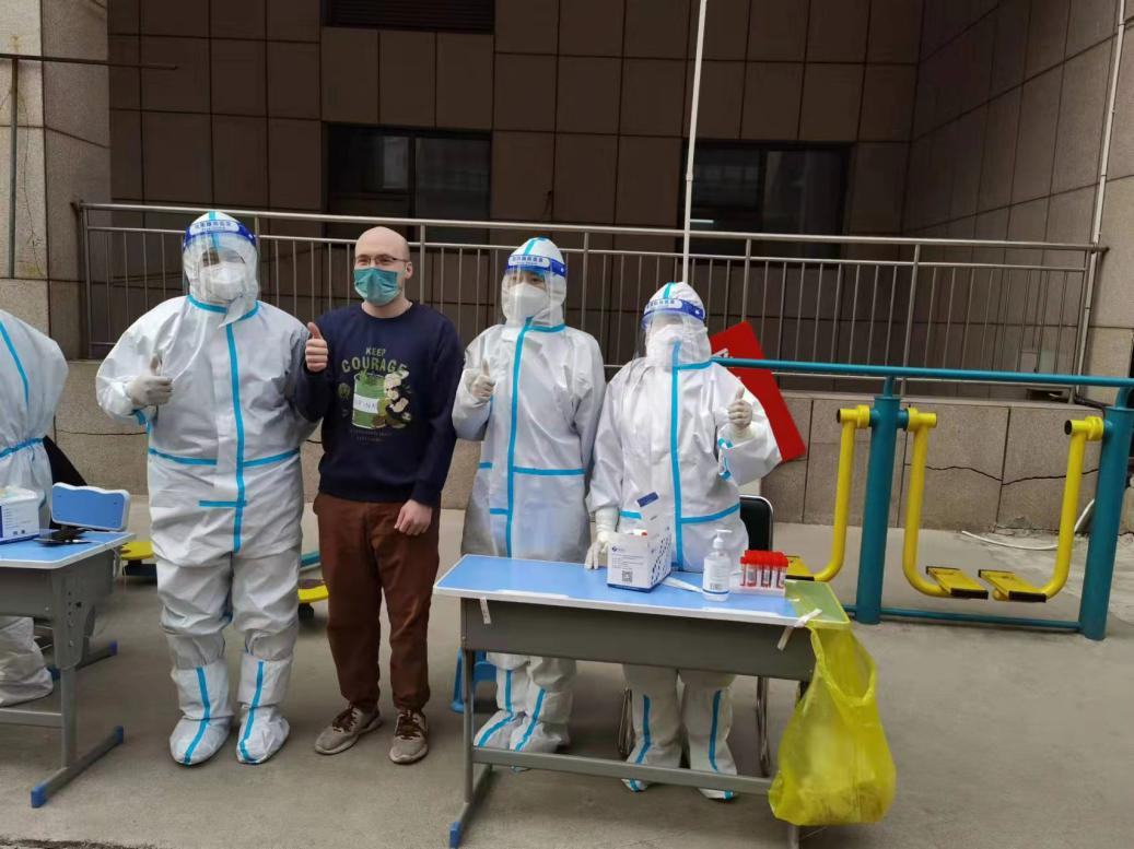 事后了解到,他叫丁晗,Kristopher John Nottingham,是一位96年的美国小伙。目前他是一名EF英孚教育机构教师,来中国已经3年多了。他说,疫情以来无论是身边中国朋友、同事、邻居的关怀,还是医护人员志愿者们对他的帮助,都让他备感温暖。他也自觉遵守疫情期间的防控要求,居家隔离不外出,按时进行核酸检测。他表示,疫情以来,亲身感受到了中国采取的最全面最严格最彻底的防控举措,见证了唐山人民众志成城抗击疫情的巨大勇气,由衷感叹道:“只有中国才能做成这件事,简直是个奇迹!我要告诉我的家人,我在中国很安全!我在唐山很安心!”