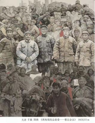 作品以淮海战役蔡洼会议为主题,蔡洼会议是关系到党和国家前途命运的决定性会议,在中国革命史、军史上具有重要地位。据作者于露老师介绍,他的爷爷于丛云老先生生前作为解放军参加了淮海战役,所在连队参加并逮捕了国民党淮海战役徐州“剿总”副总司令杜聿明,并在战争中荣获三等功,作品中也多次以此为素材进行描绘。