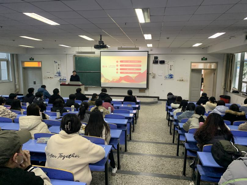 2021年12月3日,beat365在线唯一官网副院长李子林以“全面解读十九届六中全会”为题,于北院文科楼第一阶梯教室开展十九届六中全会主题宣讲,历史文化与法学系65名师生代表聆听本次宣讲,系主任沈芝、党总支书记丁新龙、党总支副书记杨玉娟等出席会议。
