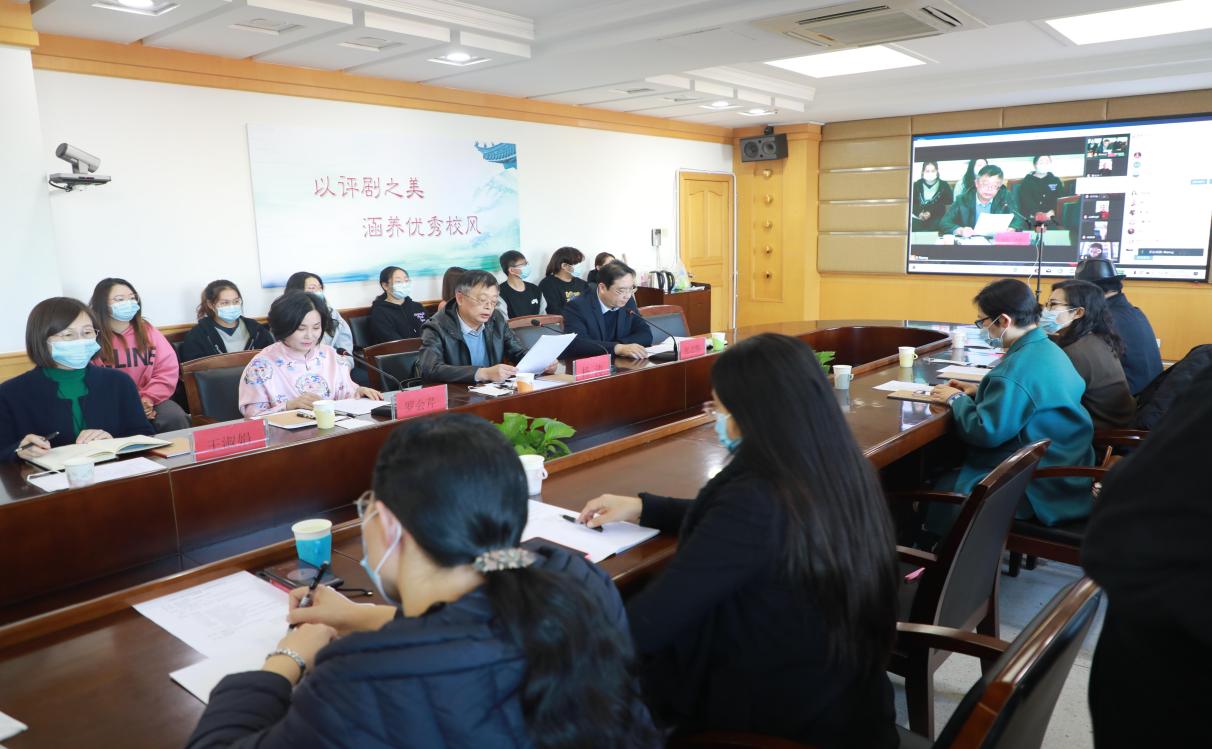 11月26日下午,由河北省戏剧家协会、beat365在线唯一官网共同主办,音乐系、评剧文化研究中心承办的“评剧艺术的传承与发展”京津冀专家研讨会成功举行。本次研讨会旨在推广传承评剧艺术,进一步挖掘评剧艺术价值,探讨借助新的传播方式,扩大评剧传承范围,彰显其独特的艺术魅力。大会采取线上线下相结合的形式,充分运用新媒体技术,实现了京津冀三地专家在线与线下主会场师生相互交流研讨,同步进行网络直播。研讨会气氛热烈,专家发言精彩,频频得到参会师生的赞许和掌声。学院师生以及关心评剧发展的社会各界人士分别通过现场参与、网络在线的方式参加了研讨会。