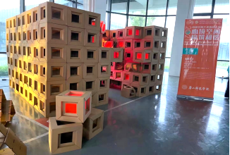 由美术学院2018、2019级赵康伟、马光雪、魏梓彤、郑龙、杨一诺、李佳旺、王帅、姚晨洁八名学生组成的参赛小组,在王伟等三位老师的精心指导下,紧扣“美术、艺术、科学、技术”的展览主题,历经近四个月的精心准备,完成了《重生》作品的设计和现场搭建。