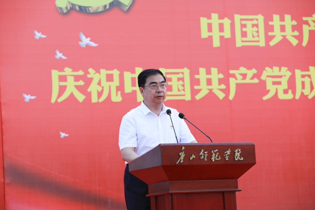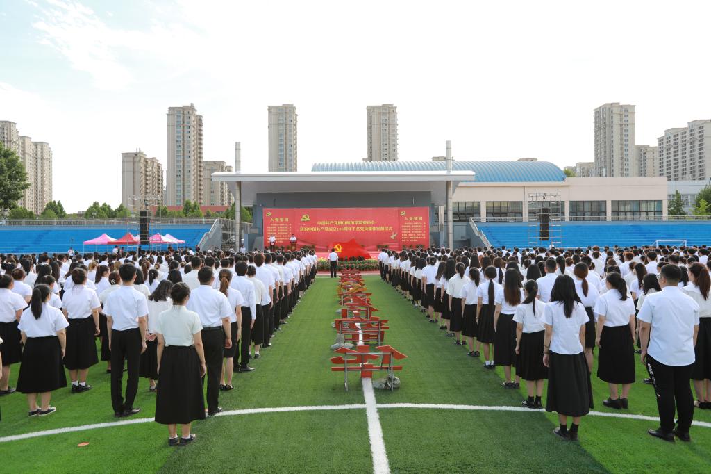 为隆重庆祝中国共产党成立100周年,回顾党的光辉历程,讴歌党的丰功伟绩,激励广大新党员坚定理想信念,牢固树立全心全意为人民服务、为党和人民事业奋斗终身的信仰,不断增强使命感、荣誉感,留下终身难忘的回忆,beat365官网在大学道校区南院操场隆重举行庆祝建党100周年千名党员集体宣誓仪式。全体党员校领导、党员中层干部、党支部书记、组织员、党员辅导员及今年发展的新党员和转正的党员参加宣誓仪式。活动由党委副书记姜瑞林主持。
