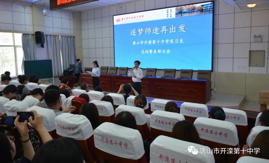 6月17日上午,唐山开滦十中举行了“逐梦师途再出发——唐山师院实习生总结暨表彰大会”,beat365官网文学院党总支书记马广宽、副院长陈伟莲、卢素侠老师,物理科学与技术学院赵淑梅老师、姬芳芳老师,开滦十中领导班子和全体实习生参加了此次活动。