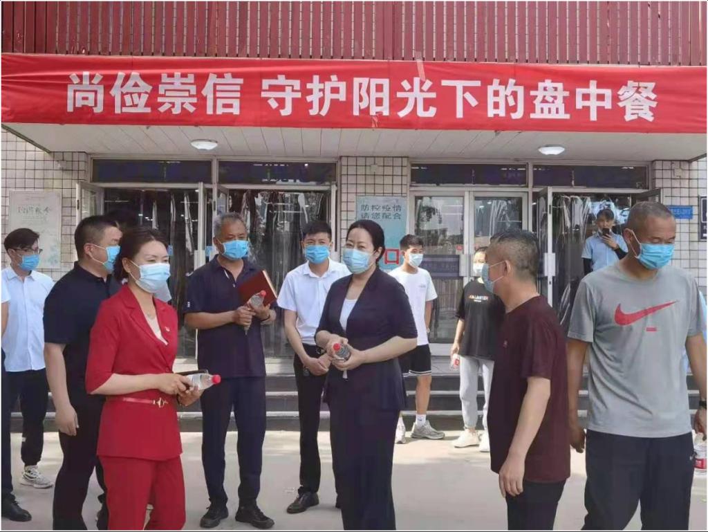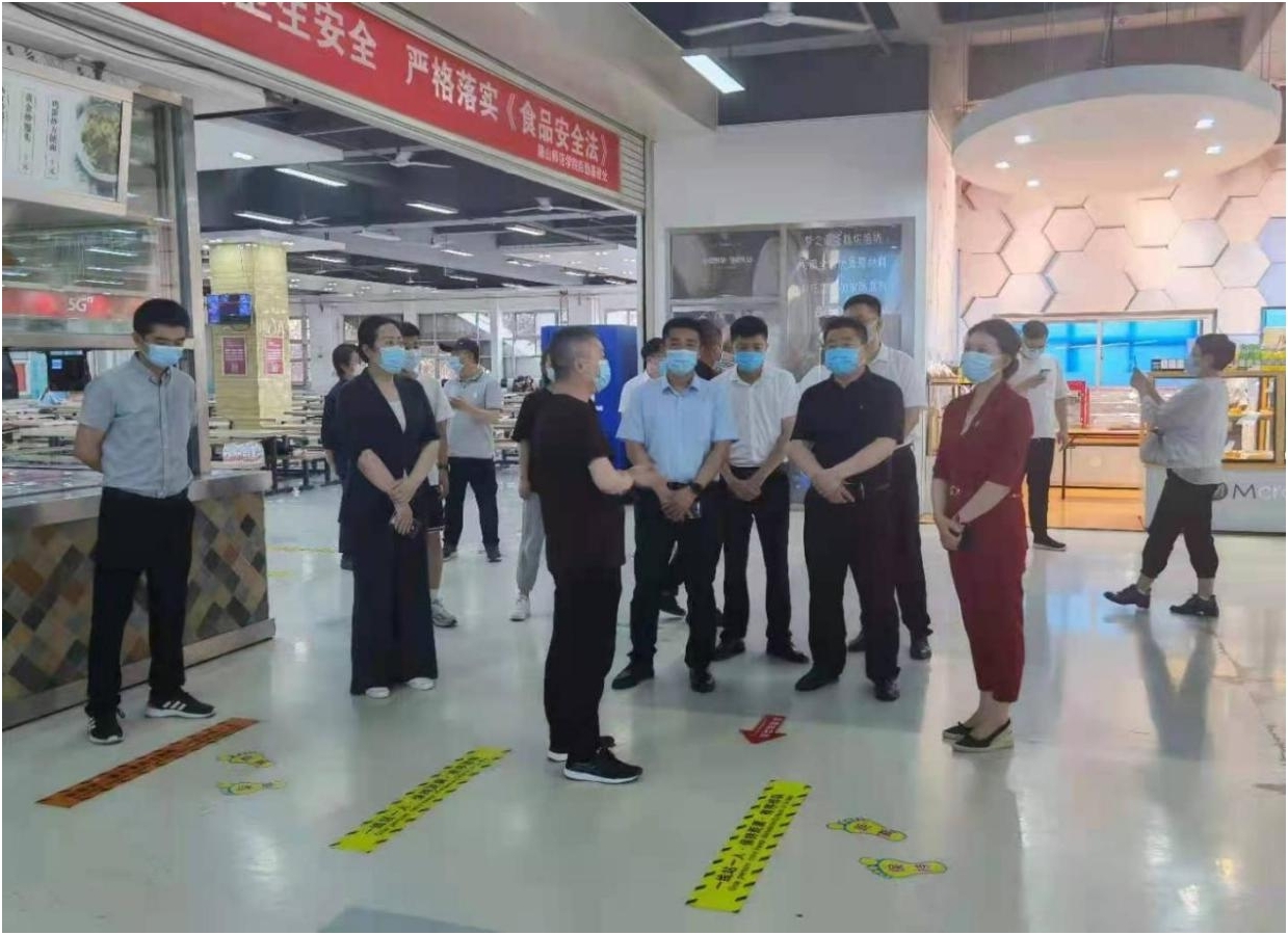 为贯彻落实《中共中央国务院关于深化改革加强食品安全工作的意见》(中发〔2019〕17号)关于持续开展“食品安全宣传周”活动精神,beat365官网与唐山市高新区市场监督管理局联合举办“尚俭崇信 守护阳光下的盘中餐”活动。路北区政协常委、路北区人大代表刘咏红、高新区新景楼社区书记李德玲、燕赵都市报李金花、高新区市场监督管理分局局长谢东、高新区市场监督管理分局副局长王芳在beat365官网党委常委副校长安文忠、后勤基建处长杨焱、副处长杨长锁、饮食中心主任马拥军以及高新区市场监督管理局相关人员陪同下于2021年6月11日下午15:30分到beat365官网第一食堂中快餐饮公司参观。