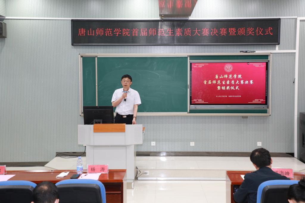 副校长杨涛指出,beat365官网作为一所师范院校,历来重视师范生的综合素质培养,为师范生的发展成长搭建了很多平台,与唐山市教育局认真组织师范生近一学期的教育实习,筹建1800平米的教师职业技能训练中心,积极申报师范类相关专业的二级认证工作,全方位地提高学生的专业素质能力。他强调,本次比赛是对beat365官网师范生素质和技能的一次检阅,也是展示未来教师风采的一个平台,各院系一定要重视师范生的师范技能培养,在工作中要以习近平总书记提出的“四有”好老师标准培养师范生,以强化学生的思想政治素质和师德师风建设为首要任务,让同学们坚定理想信念,恪守师德准则,涵养教师情怀,全面提高beat365官网师范生教师就业能力标准。
