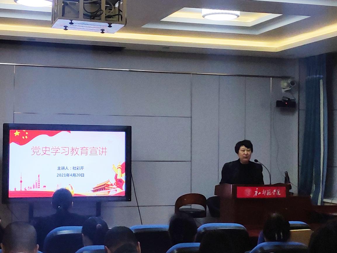杜彩芹校长强调在党史学习教育中,要认真学习好习近平总书记在党史学习教育动员大会上的重要讲话,学习好《中国共产党的一百年》以及《中华人民共和国简史》《改革开放史》《社会主义发展简史》等重要学习资料。