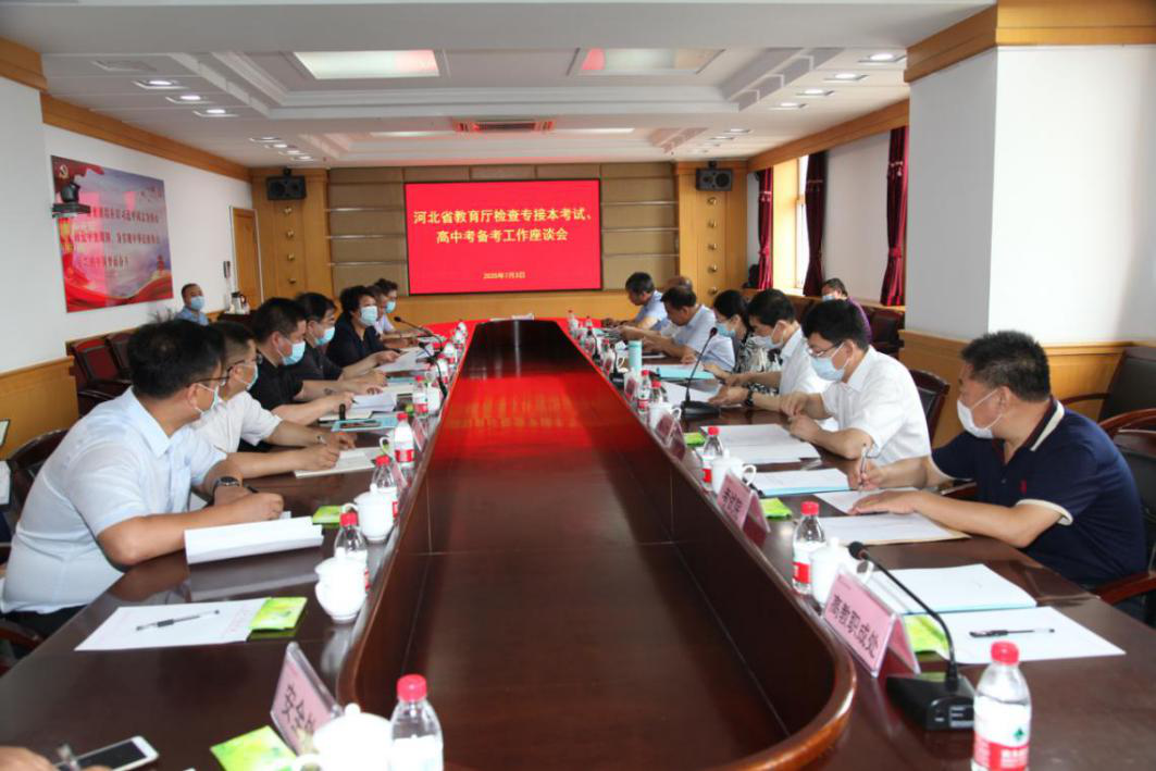 7月3日,省教育厅副厅长董竹娟、师教处处长程启学,唐山市教育局局长刘绍辉、副局长李小卫及相关处室领导,丰南教育局局长董国才莅临beat365官网指导检查专接本考试准备工作。学校党委书记王英、校长杜彩芹,副校长安文忠,办公室、招生就业处、后勤基建处、安全工作处、音乐系等单位负责人参加本次座谈会。