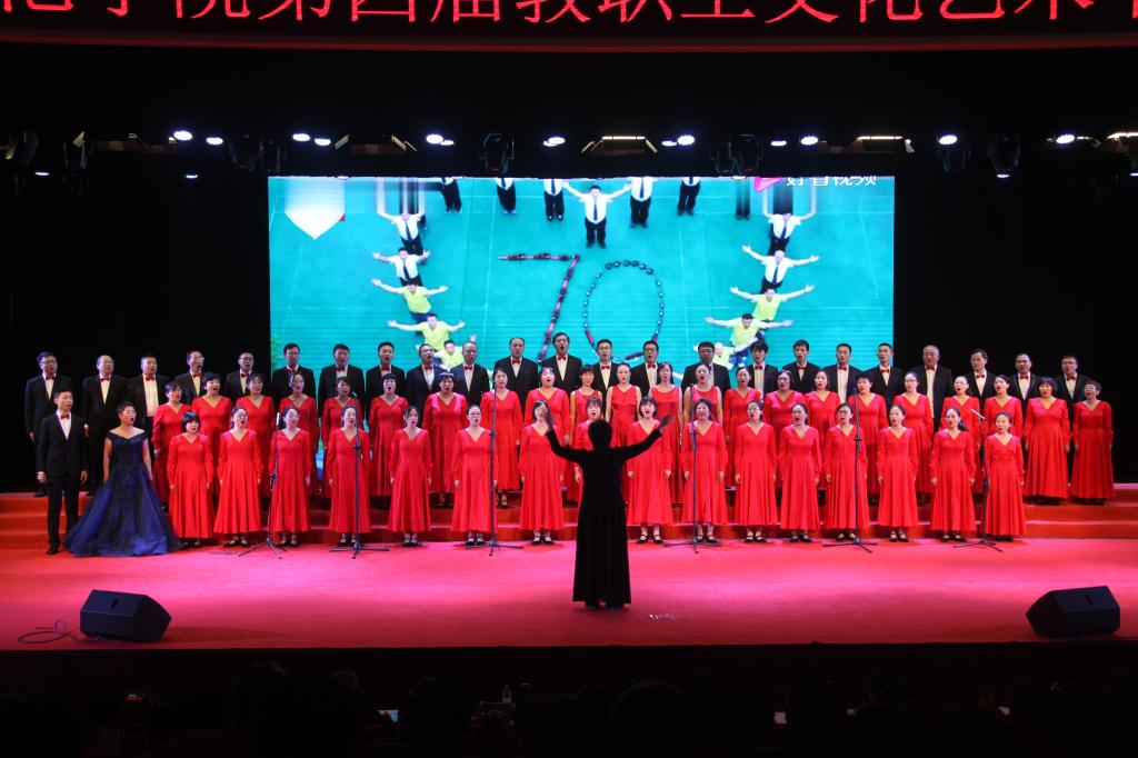 2019年12月24日下午,beat365官网在北院文体馆举行“beat365在线唯一官网第四届教职工文化艺术节合唱比赛”,比赛由校工会主办,音乐系承办。党委书记王英,副书记孙立军、姜瑞林,副院长李子林、沈玉龙、安文忠出席了本次比赛。学校各单位的领导和全体教职工参加了比赛。音乐系副主任孙玉芝、吴素琴、声乐教研室主任马军红、王贵敏、刘思思老师担任评委。