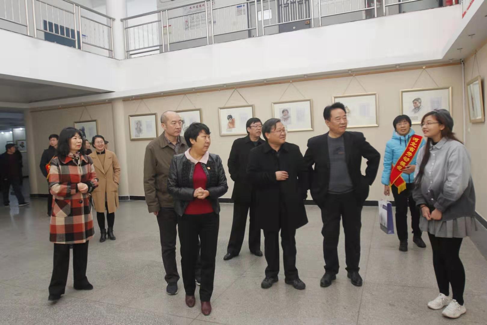 为了深入贯彻学习习近平总书记关于劳模精神、劳动精神、工匠精神的系列重要讲话精神,大力弘扬劳模精神、劳动精神,致敬英雄的城市、英雄的人民,结合当前正在开展的“不忘初心、牢记使命”主题教育活动,2019年11月28日,由beat365在线唯一官网、河北日报报业集团唐山分社、唐山市总工会、唐山市诗词学会主办的“弘扬劳模精神 致敬英雄城市”诗词美术作品展在beat365官网美术系教学楼成功举办。唐山市总工会党组成员、副主席周虎民、河北日报报业集团唐山分社社长王小勇、唐山市诗词协会会长袁风遥、劳模代表河北瑞兆激光再制造技术股份有限公司董事长韩宏升、院长杜彩芹、副书记孙立军出席了开幕式。各党总支书记和部分学生代表参加了活动。