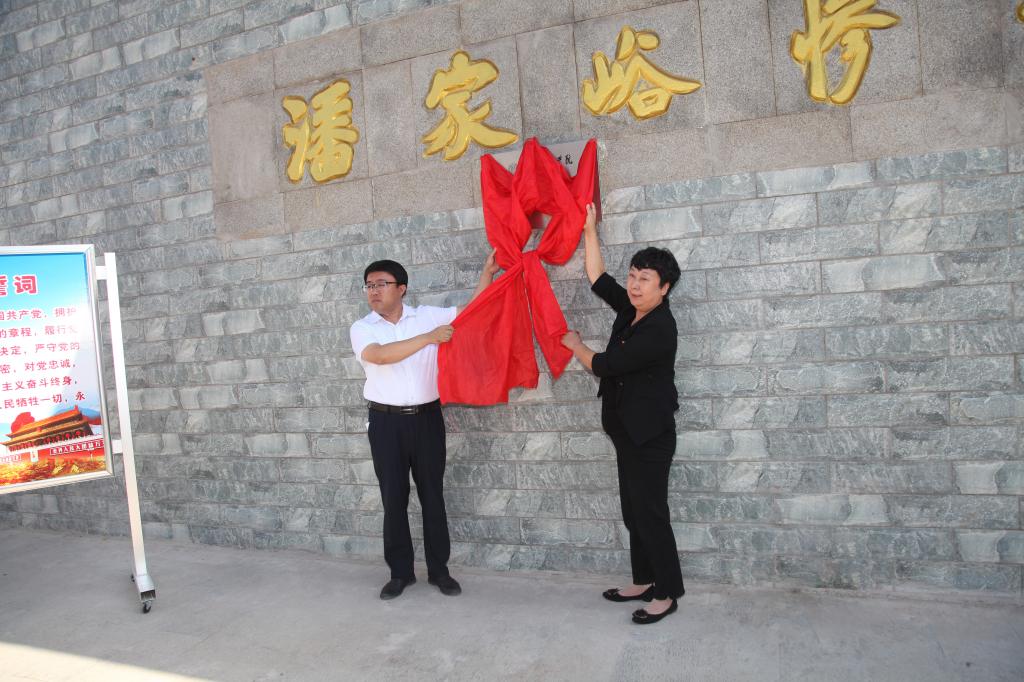 beat365在线唯一官网院长杜彩芹与潘家峪纪念馆馆长周学军为爱国主义教育基地揭牌。