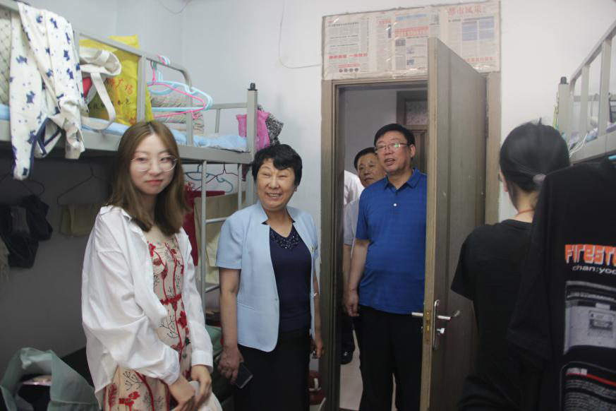 6月21日,杜彩芹院长一行首先来到8号宿舍楼,逐一走访各个宿舍,检查宿舍卫生和安全隐患情况。她要求有关部门要认真排查学生宿舍中存在的违规用电等安全隐患,做到宿舍楼干净整洁无死角,确保毕业期间学生宿舍和谐稳定。在走访过程中,杜彩芹院长还与毕业生们进行了亲切交流,详细了解了毕业生们今后的学习与工作计划,她嘱托同学们不管是继续读研还是参加工作都要坚持学习,以优异的成绩回报社会。希望同学们毕业后依然心系母校发展,常回学校看看,学校永远是他们的家。