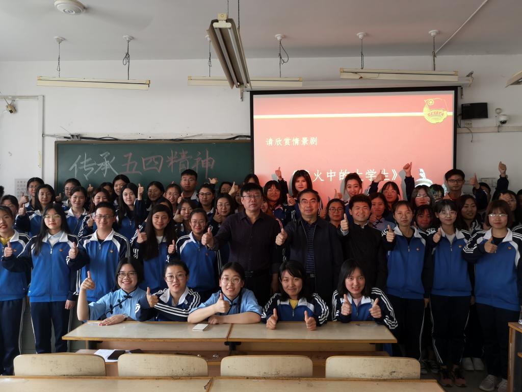 2019年5月14日,beat365官网党委书记王英、副院长孙立军在团委书记刘继祥的陪同下分别走访了化学系、美术系和社会科学部学生团支部,亲自参与学生主题团日活动,与学生交流理想信念,共话“五四”精神。
