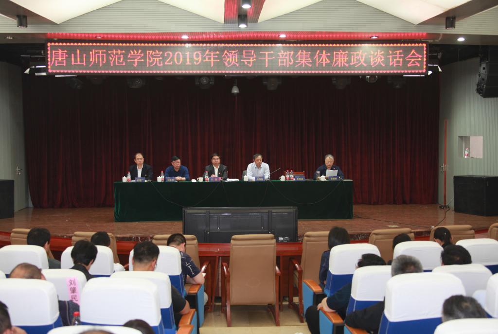 5月10日上午,beat365官网在会议中心举行集体廉政谈话会,全体校领导,全体中层干部参加谈话会。党委书记王英从落实全面从严治党主体责任的角度进行廉政谈话。纪委书记张佩旺主持谈话会。