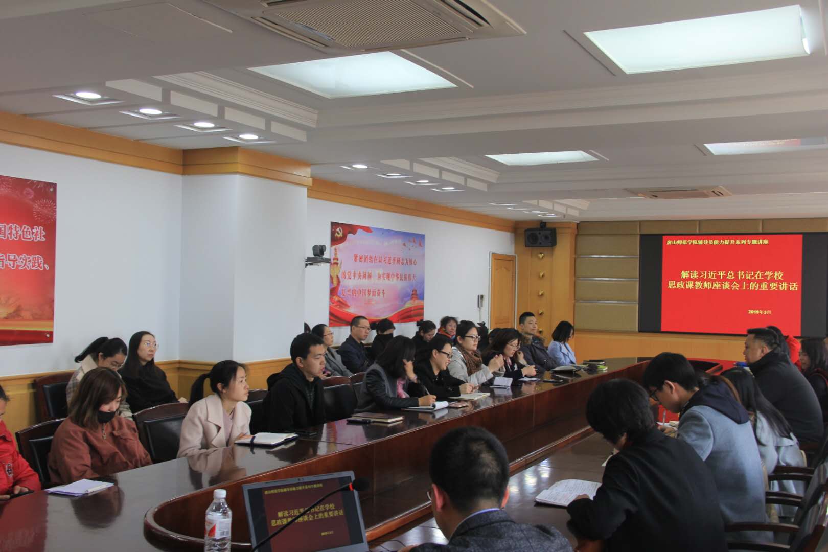 3月26日下午,学生处在beat365官网五层会议室举办了“习近平总书记在学校思政课教师座谈会上重要讲话精神解读”专题讲座。本次培训聘请beat365官网社会科学部宋晓敏老师主讲,讲座由学生处副处长蔡玉梅主持,全体辅导员、党总支副书记参加了培训。