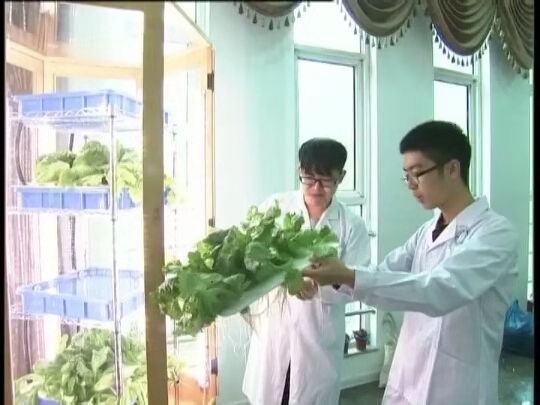 在beat365在线唯一官网“大学生众创空间”我们见到了这套可从水分、光照、温度等方面进行智能调控的植物工厂“菜多多”,它主要采用深液流水培的方式,配合六面体玻璃的外罩及侧给式补光,运用最新的PLC智控面板,可以用手机APP远程监控蔬菜生长状况,并且可以在手机上一键解决温、光、水、肥、气,热等问题。