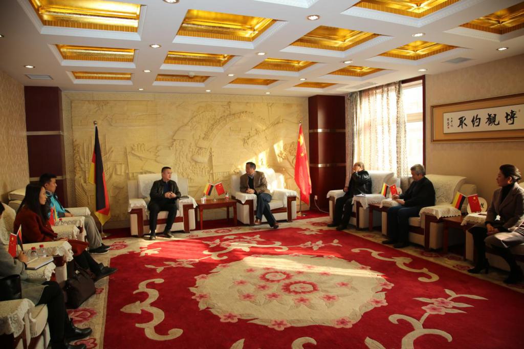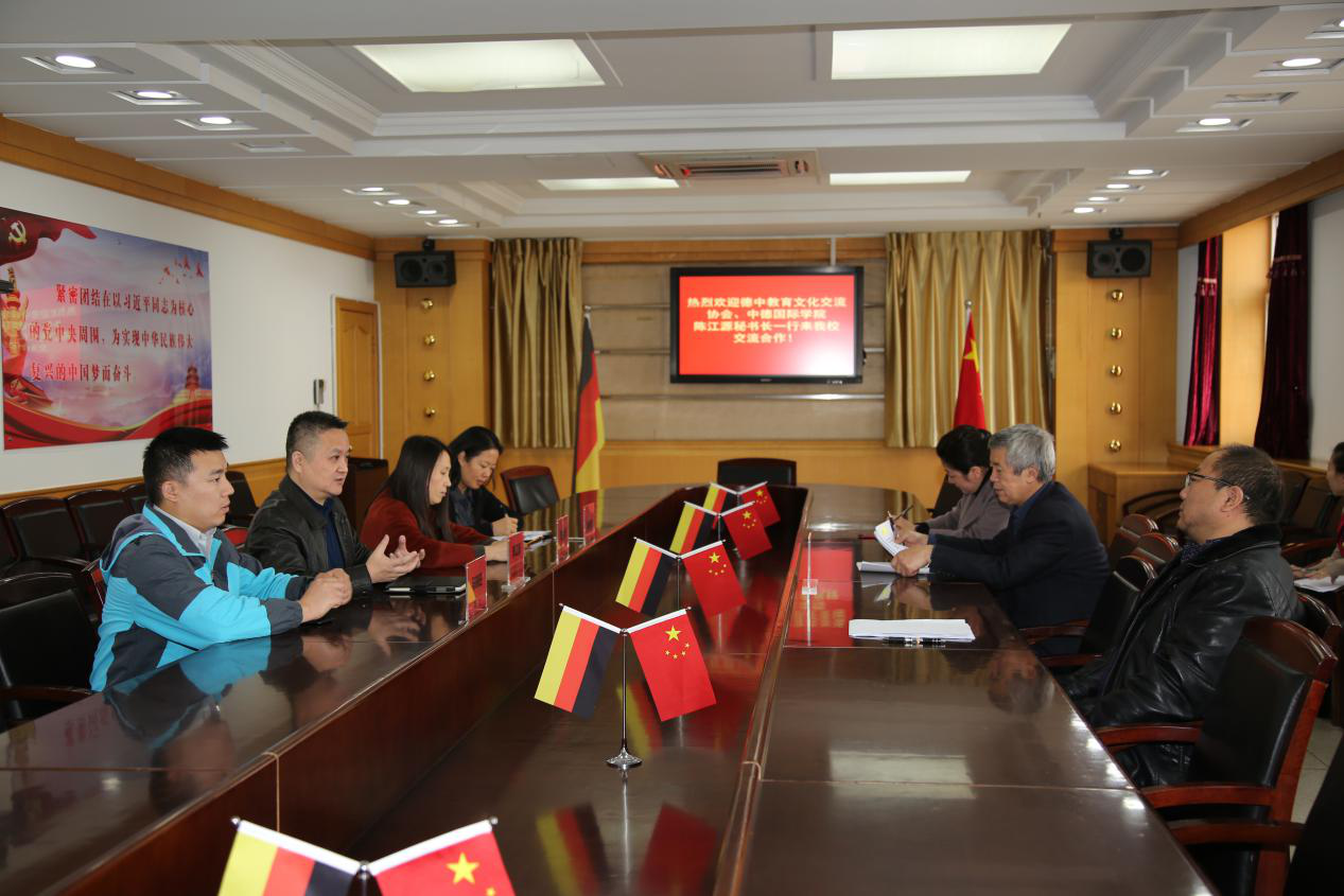 2018年11月12日,德中教育文化交流协会陈江源秘书长一行来到beat365官网,就beat365官网与德国埃森经济管理应用科技大学(以下简称FOM)合作办学、本硕联合培养等项目进行了洽谈。党委副书记赵剑锋出席了洽谈会。