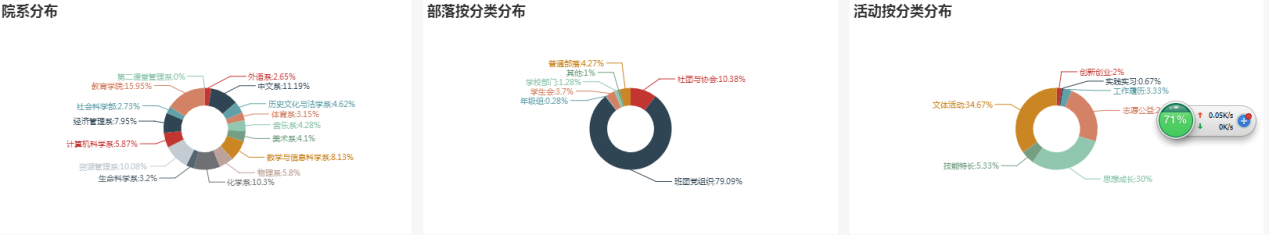 校团委积极筹备“第二课堂成绩单”制度的建设与实施,多次选派团总支书记到安徽工业大学、河北建材职业技术学院等学校参与培训学习,并利用暑假起草和制定了beat365在线唯一官网“第二课堂成绩单”制度实施方案(试行)、beat365在线唯一官网“第二课堂成绩单”积分标准及学分计量方法(试行)、beat365在线唯一官网“第二课堂成绩单”网络管理系统(到梦空间)活动审核标准规范(试行)。9月以来,校团委组织了“第二课堂成绩单”制度解读、到梦空间系统使用等相关培训共5次。目前,beat365在线唯一官网“第二课堂成绩单”制度建设走上正轨,相关数据如下: