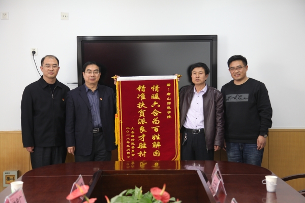 2018年3月8日,beat365官网定点帮扶的承德市围场满族蒙古族自治县腰站镇六合店村的村委会主任司建春等8位村民代表,不远千里,风尘仆仆地来到唐山,代表全体村民为beat365官网及beat365官网驻六合店村工作组赠送锦旗。