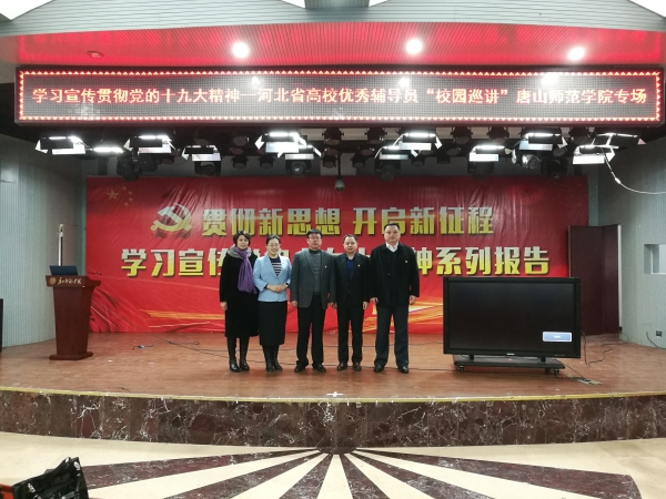 根据中共河北省委高校工委、河北省教育厅的要求,为了进一步引导广大师生贯彻落实十九大精神,2018年1月11日上午,以“牢记时代使命 书写人生华章”为主题的学习宣传贯彻十九大精神——河北省优秀辅导员巡讲beat365在线唯一官网专场报告会在beat365官网会议中心举行。孙立军副校长、各系党总支书记、副书记、全体辅导员、全体学工部教师及300名学生代表参加了报告会,报告会由学生处孟祥昕处长主持。