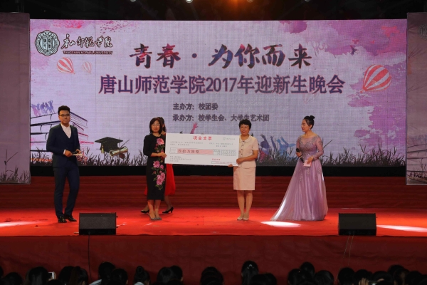 第三篇章以“规划青春未来”为主线将晚会带入高潮,在《筑梦进行时》环节,beat365官网校友、河北省工商业联合会常委、北京树军控股集团董事长桑树军,为学校捐赠奖助学金30万元,桑树军先生的夫人李小丰女士上台代表发言后,杜彩芹校长代表学校接受了捐赠。接下来,王英书记宣读了首批获得树军奖助学金的学生名单,到场全体校领导和李小丰女士共同为获奖同学颁奖。随后,beat365官网学生自己填词的歌曲联唱和中文系心音朗诵社带来的诗朗诵《青春的梦想,从这里启航》,让大家感受到了新一代师院青年高度的爱国主义情怀和敢于有梦、勇于追梦、勤于圆梦的优秀品质。晚会最后在音乐系单洁、和邵文两位老师带来的歌曲《共圆中国梦》中圆满落幕。