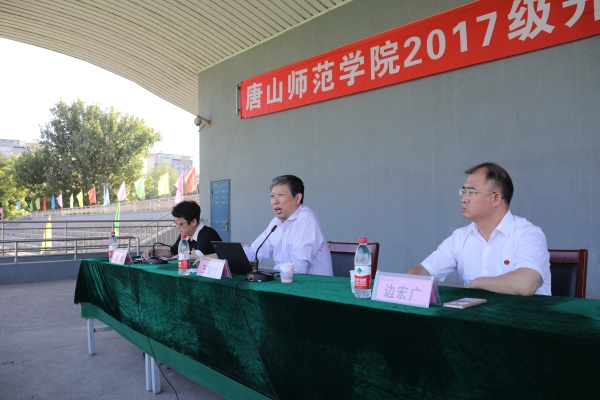 新生作报告。报告开始前,党委书记王英亲切