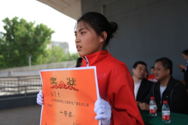 为推进阳光体育运动,吸引广大青年学生走下网络、走出宿舍、走向操场,促进大学生养成积极向上的生活习惯,营造“我运动,我健康,我快乐”的氛围,进而检验2016级学生晨练效果,展现学生风采,丰富校园生活,学生处于4月25日下午在大学道校区操场举行了2016级学生广播操比赛。