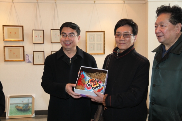 篆刻、油画、漆画等作品,获得艺术家们的一致好评。美术系学生向艺术家们赠送